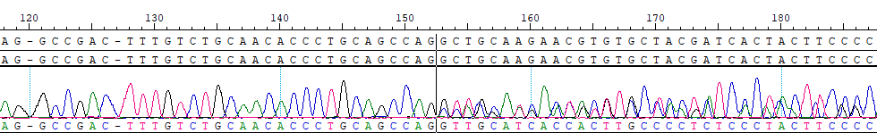 | Chr position(GRCh37): chr13-20763530-CACACGTTCTTGCAGC(16bp)- | |
