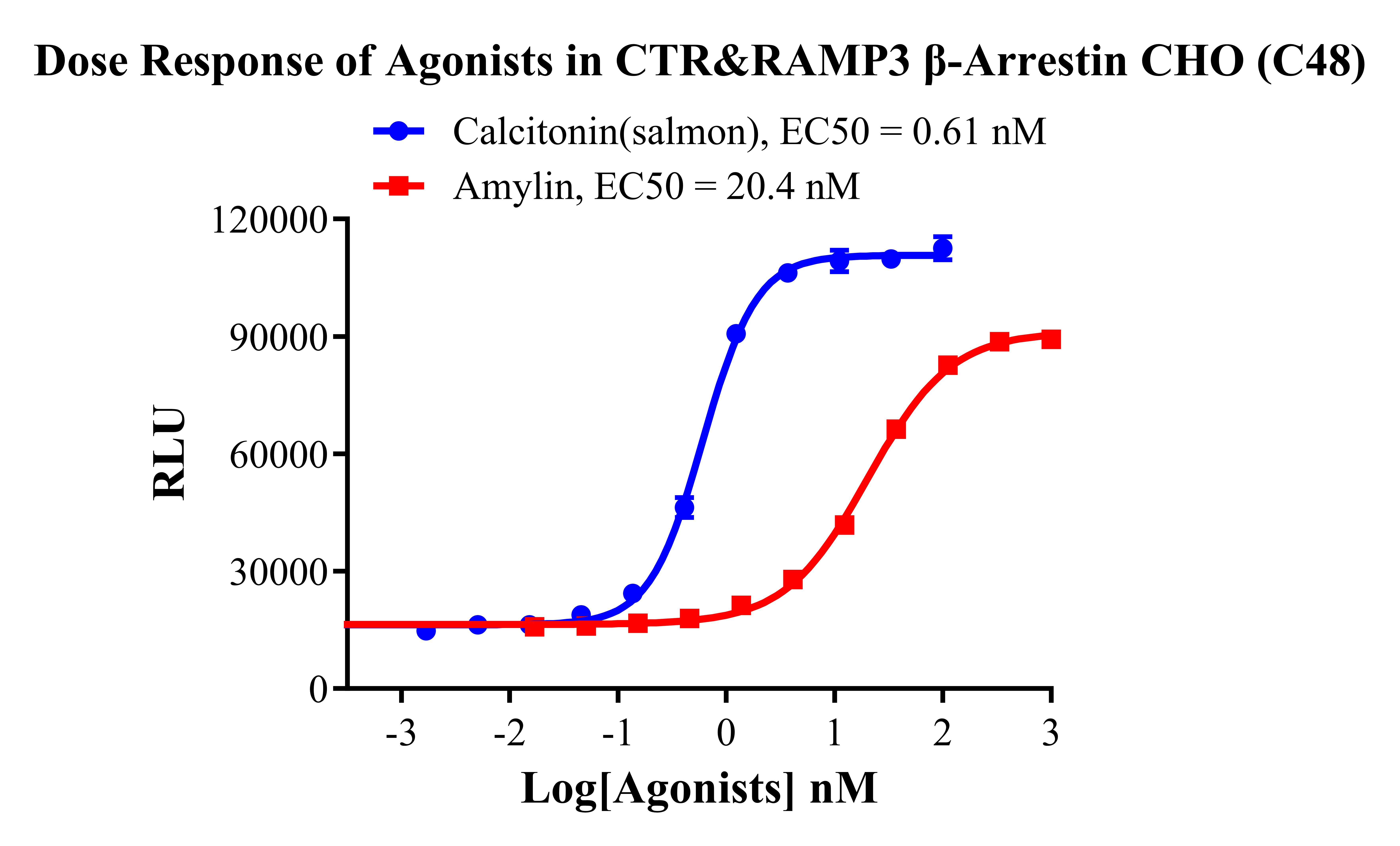 Figure 4. Dose response of Agonists in CTR&RAMP3 β-Arrestin CHO(C48).