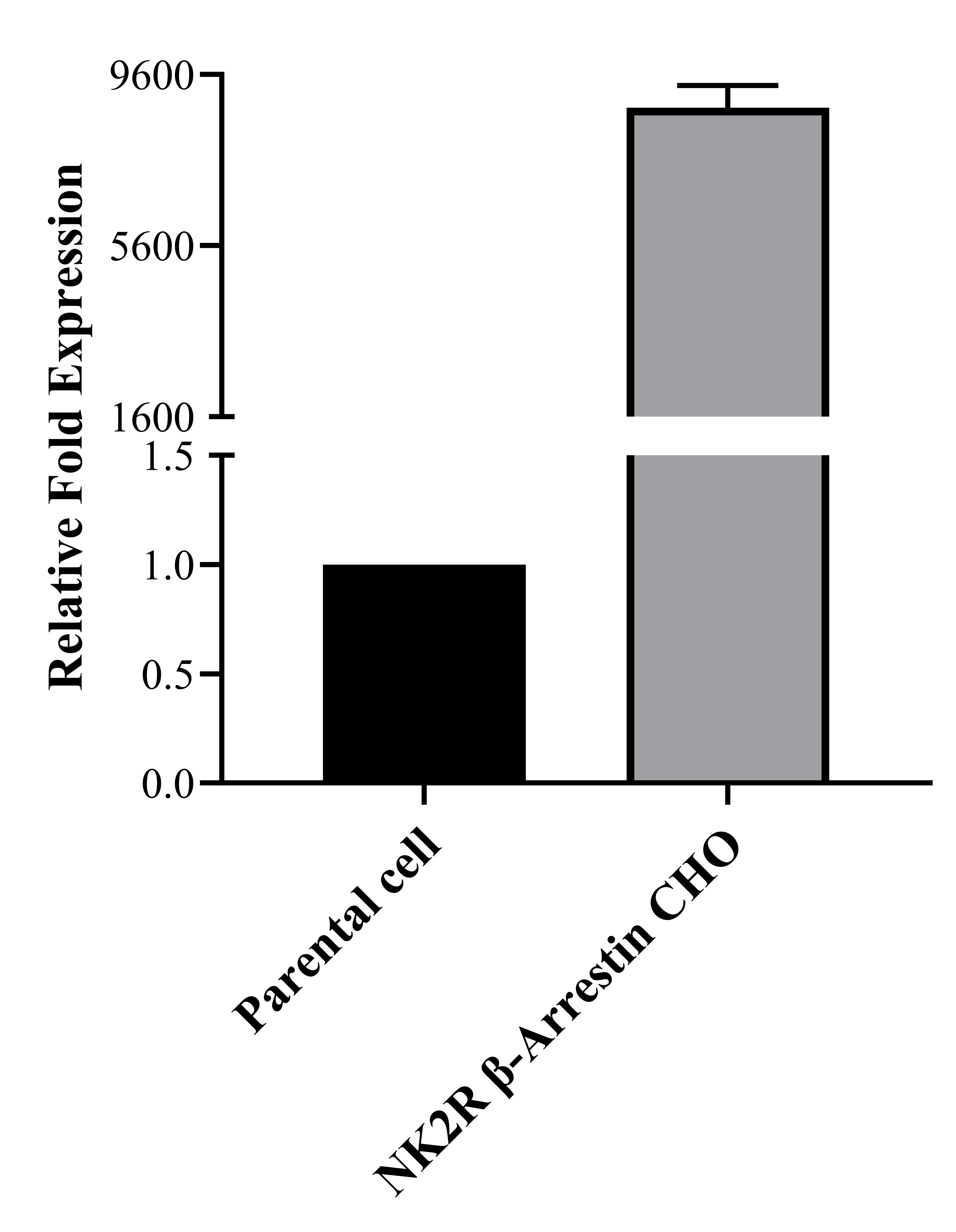 NK2R β-Arrestin CHO 報告基因藥靶模型很好的模擬了體內(nèi) NK2R/β-Arrestin 的信號轉(zhuǎn) 導(dǎo)過程,原理見下圖所示。當(dāng)缺乏配體刺激時,β-Arrestin 不與 NK2R 結(jié)合,融合β-Arrestin 的熒光素酶處于失活構(gòu)象,當(dāng) NK2R 遭遇配體刺激時,融合熒光素酶報告基因的β-Arrestin 被招募,使熒光素酶報告基因處于激活狀態(tài),加入其底物后發(fā)光信號增強(qiáng)。