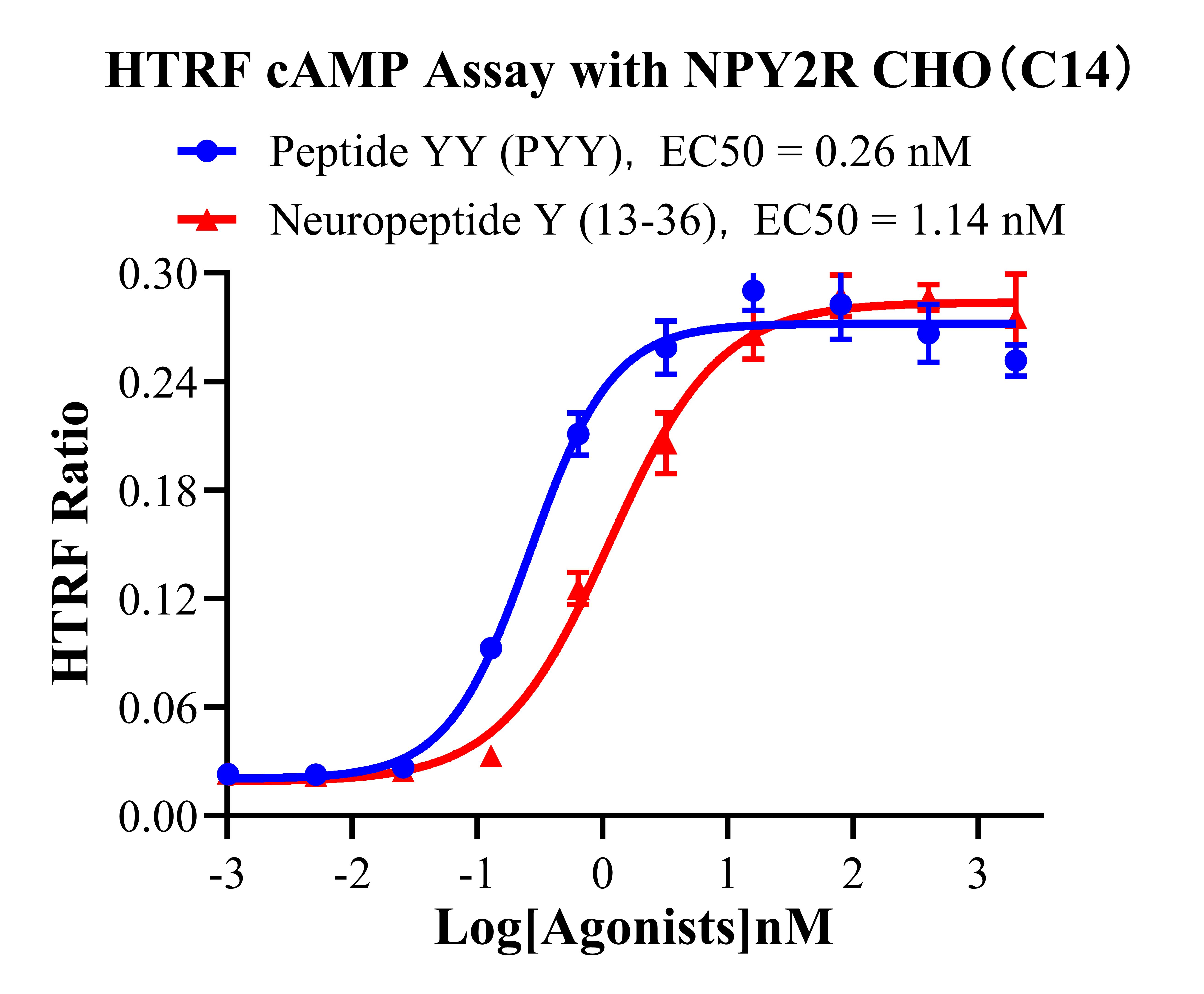 IV. Representative Data![]() Figure 2. Recombinant NPY2R CHO stably expressing NPY2R. ![]() Figure 3. HTRF cAMP Assay with NPY2R CHO(C14). |