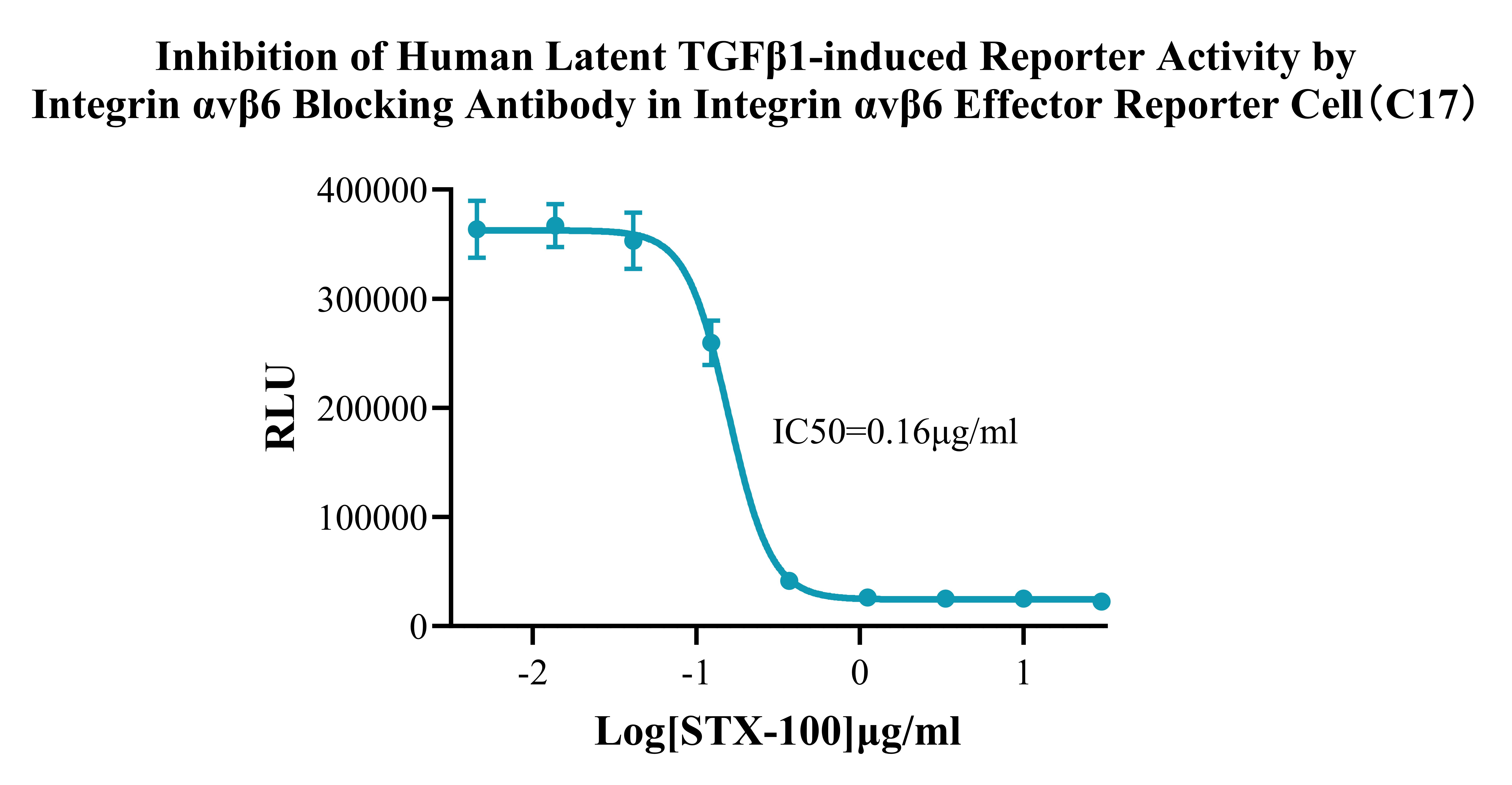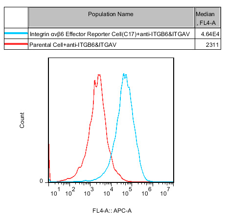 IV. Representative Data![]() Figure 2. Recombinant Integrin avβ6 Effector Reporter Cell stably expressing ITGB6&ITGAV. ![]() Figure 3. Dose Response of Recombinant Human Latent TGFβ1 in Integrin avβ6 Effector Reporter Cell (C17). ![]() Figure 4. Inhibition of Human Latent TGFβ1-induced Reporter Activity by Integrin avβ6 Blocking Antibody in Integrin avβ6 Effector Reporter Cell(C17). ![]() |