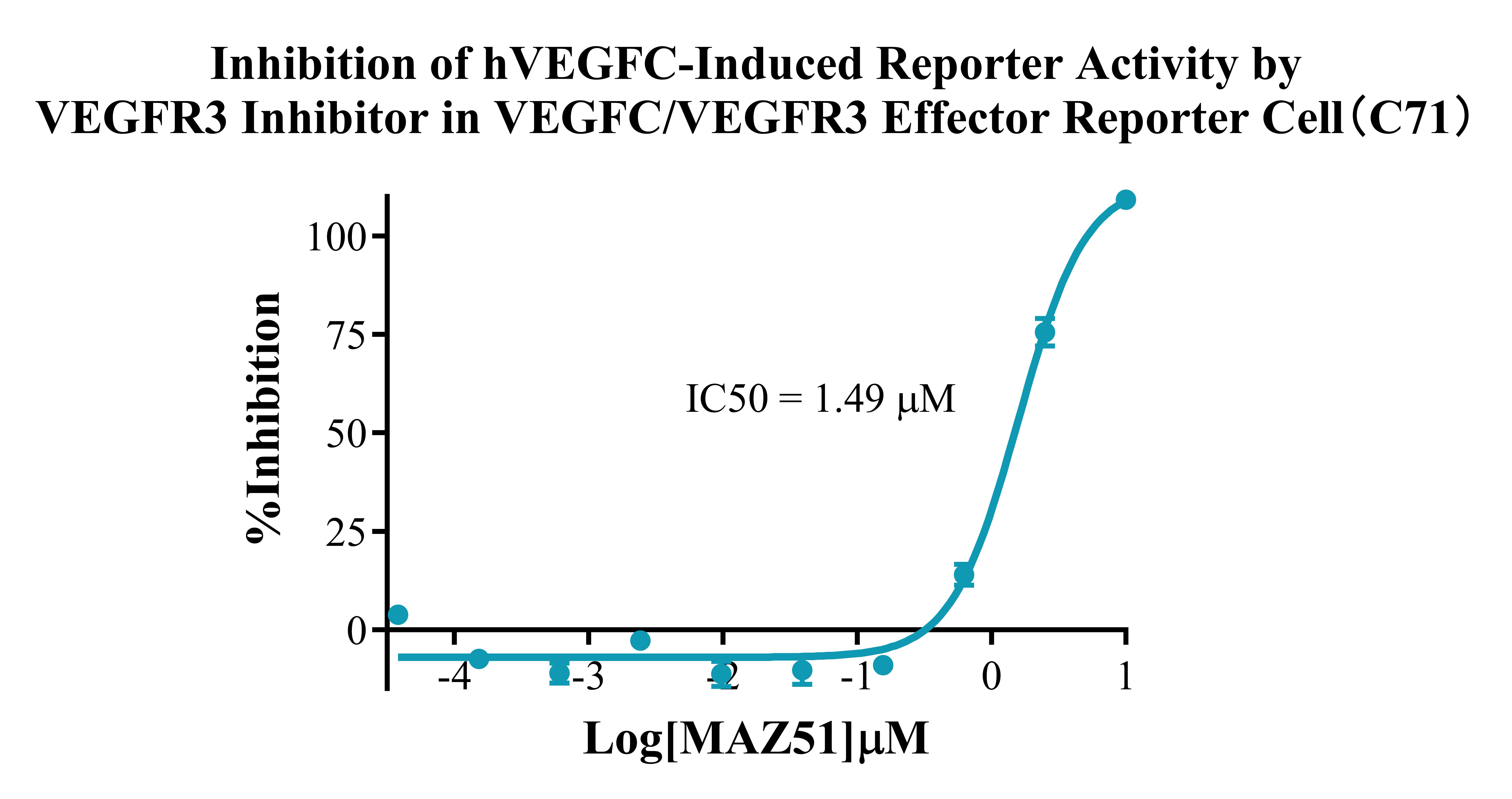 ![]() Figure 5. Inhibition of hVEGFC-Induced Reporter Activity by VEGFR3 Inhibitor in VEGFC/EGFR3 Effector Reporter Cell (C71). |