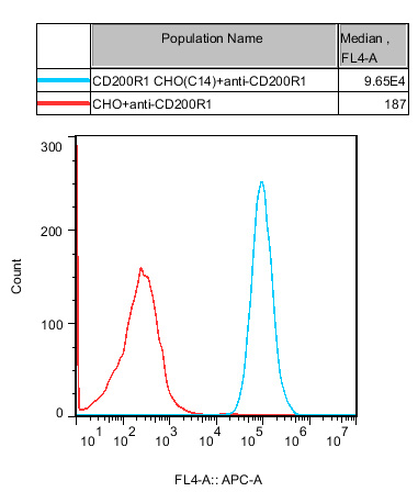 | CD200R1 CHO 細胞,在 CHO-K1 細胞的基礎上,穩(wěn)定表達人 CD200R1。 | |
