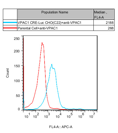 VPAC1 CRE-Luc CHO 報(bào)告基因藥靶模型很好的模擬了體內(nèi) VPAC1 的信號(hào)轉(zhuǎn)導(dǎo)過(guò)程, 原理見(jiàn)下圖所示。![]() Figure 1. VPAC1 CRE-Luc CHO 細(xì)胞模型原理圖 |