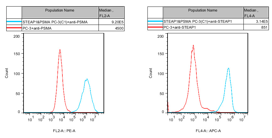 IV. Representative Data![]() Figure 1. Recombinant hSTEAP1&hPSMA/PC-3 stably expressing hSTEAP1&hPSMA. |