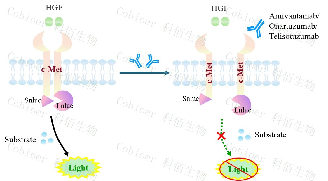 MET Dimerization CHO 報(bào)告基因藥靶模型很好的模擬了體內(nèi) MET 的信號(hào)轉(zhuǎn)導(dǎo)過程, 原理見下圖所示。![]() Figure 1. MET Dimerization CHO 細(xì)胞模型原理圖 |