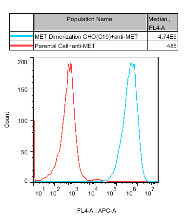 ![]() Figure 2. Recombinant MET Dimerization CHO stably expressing MET. ![]() Figure 3. Dose Response of Recombinant Human HGF in Met Dimerization CHO(C19).