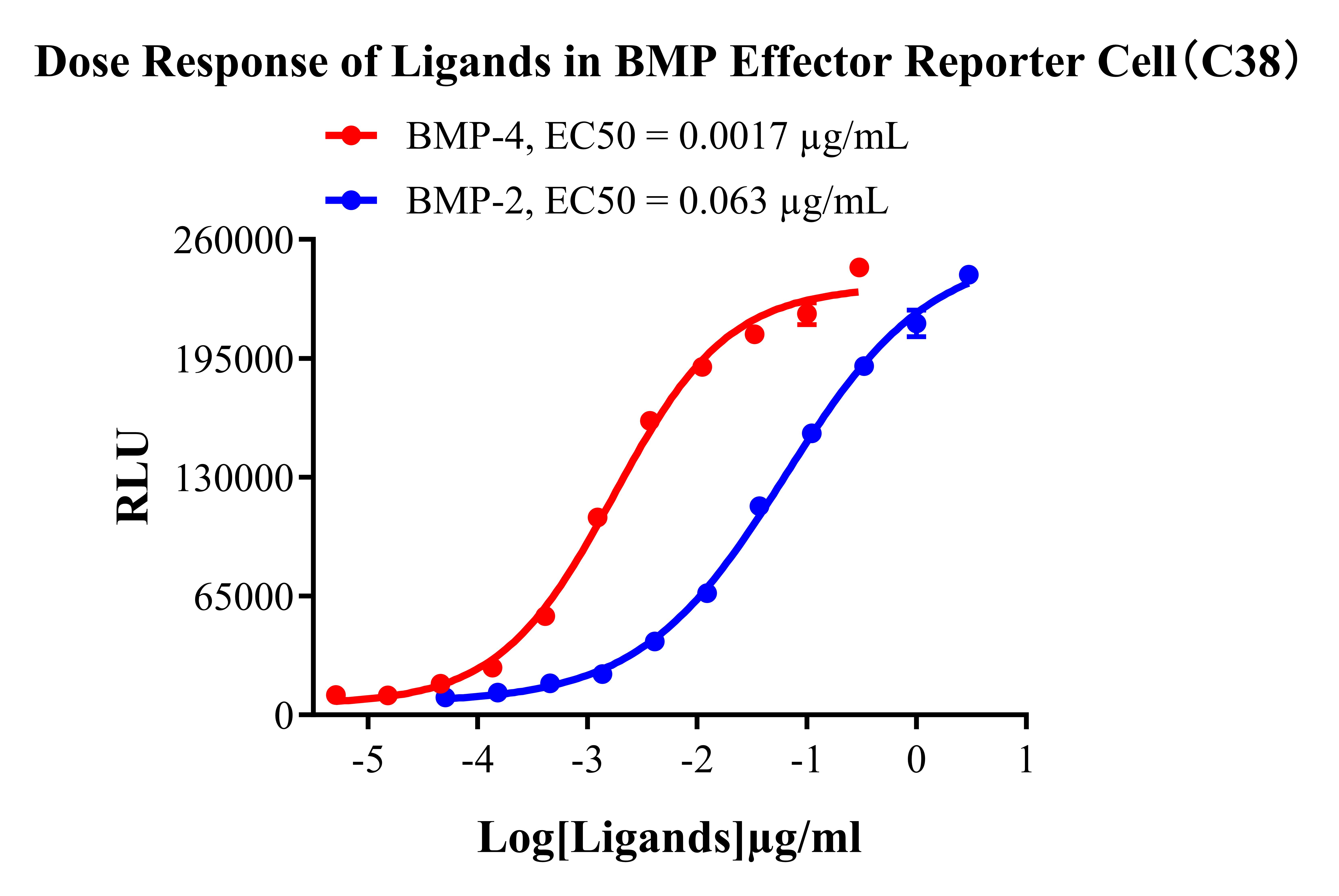 ![]() Figure 2. Dose Response of Ligands in BMP Effector Reporter Cell(C38).