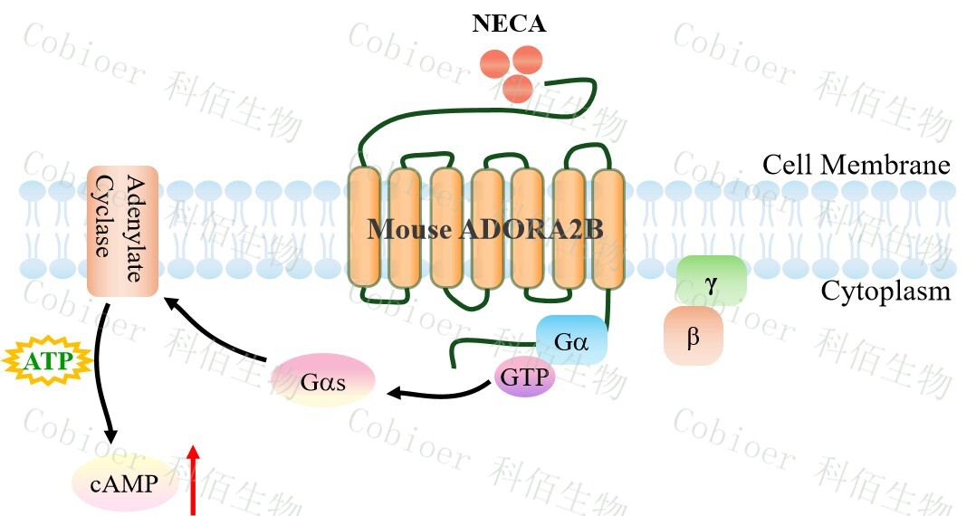 cAMP 在 G 蛋白偶聯(lián)受體(GPCR)信號轉(zhuǎn)導(dǎo)中是一種關(guān)鍵的第二信使。當(dāng)配體結(jié)合 到 GPCR,構(gòu)象發(fā)生變化,激活受體接著激活 G 蛋白,Gs 的激活導(dǎo)致腺苷酸環(huán)化酶調(diào)控 cAMP 的升高。