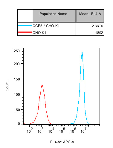 cAMP 在 G 蛋白偶聯(lián)受體(GPCR)信號轉(zhuǎn)導(dǎo)中是一種關(guān)鍵的第二信使。當(dāng)配體結(jié)合到 GPCR,構(gòu)象發(fā)生變化,激活受體接著激活G蛋白,Gi的激活導(dǎo)致腺苷酸環(huán)化酶調(diào)控 cAMP 的下調(diào)。CCR5 藥靶模型很好的模擬了體內(nèi) CCR5 的信號轉(zhuǎn)導(dǎo)過程,原理見下圖所示。![]() Figure 1. CCR5 CHO 細(xì)胞模型原理圖