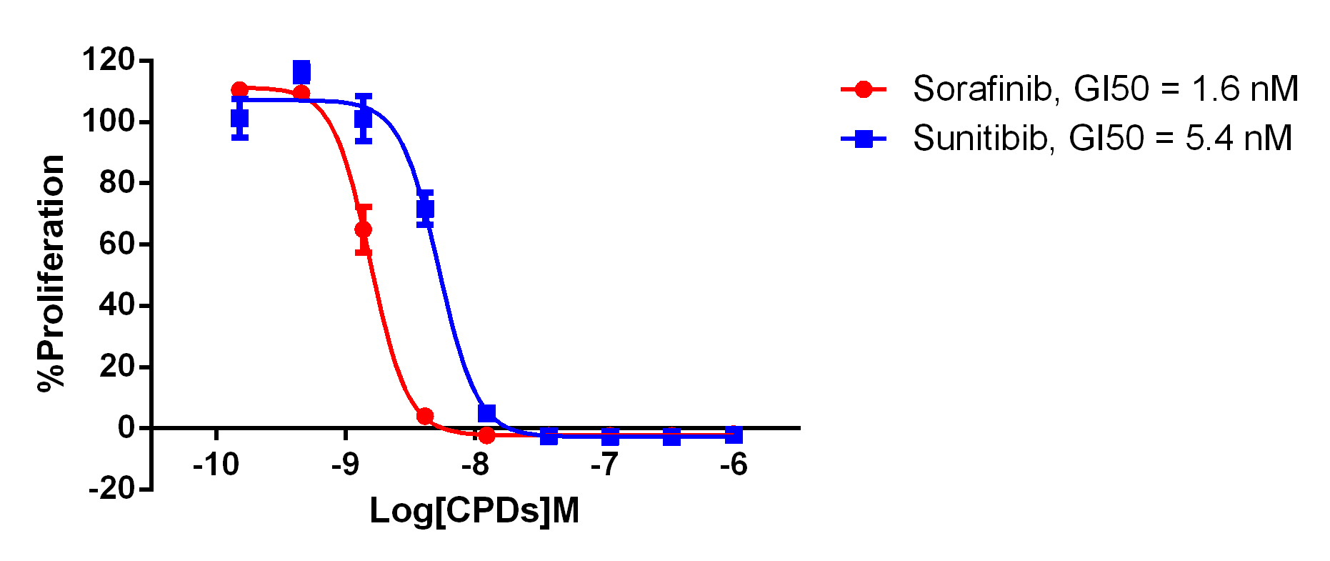 Figure . Anti-proliferation assay of two reference compounds on the FLT3-ITD/BaF3 Stable Cell Line |