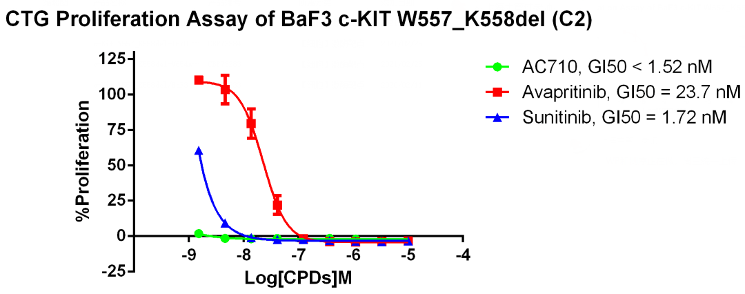 Figure 3. CTG Proliferation Assay of BaF3 c-KIT W557_ K558del (C2). |