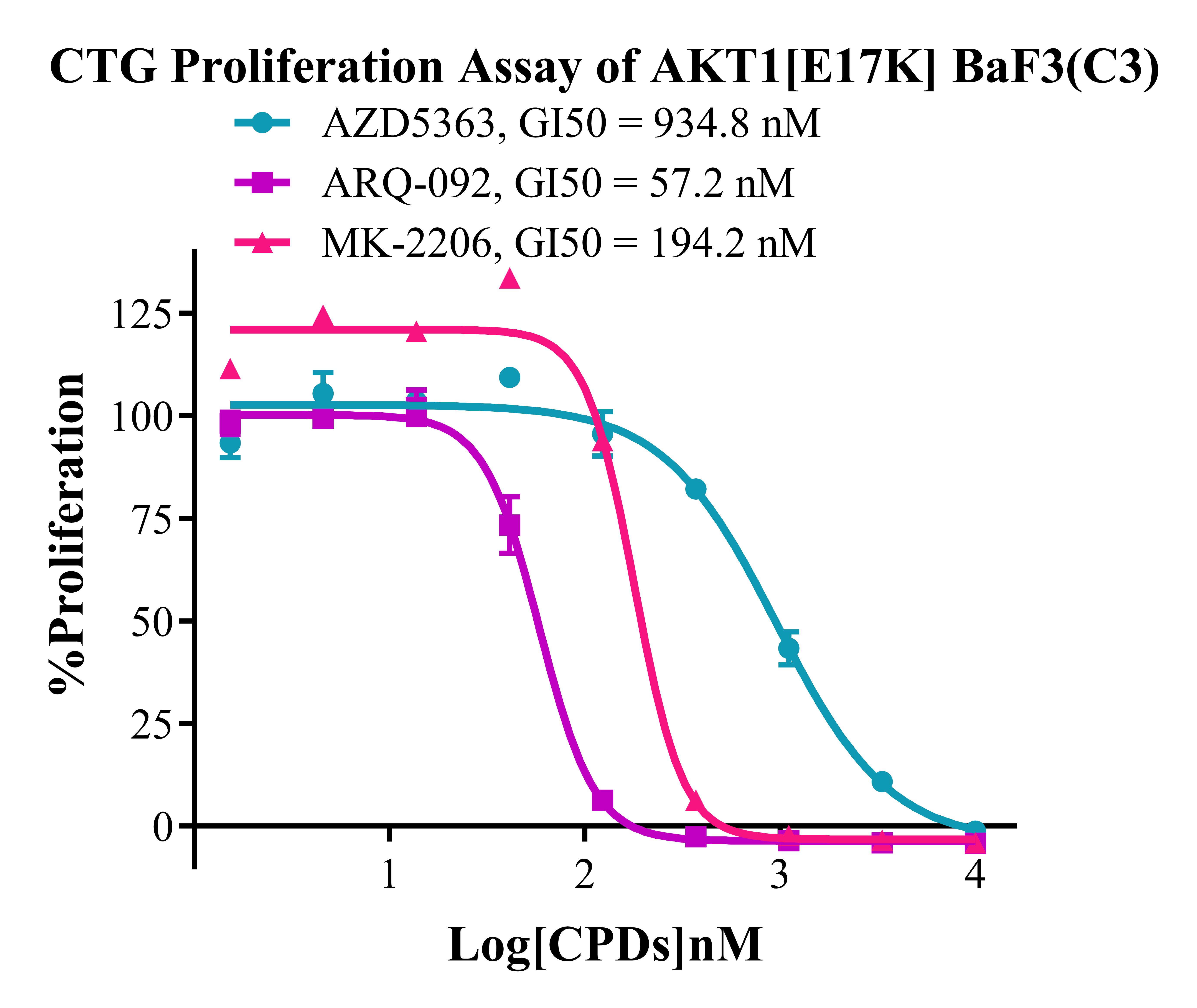 BaF3(小鼠原 B 細胞)的生長和增殖需要 IL-3 的維持。通過引入各種表達激酶的基因, 能作為 BaF3 的驅動基因,讓 BaF3 不再依賴 IL-3 而增殖,進而激酶基因成為 BaF3 增殖依賴的驅動基因,用于評估小分子藥物對激酶的靶向抑制作用,原理及流程見下圖所示。