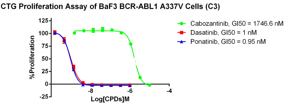 Figure 4. CTG Proliferation Assay of BaF3 BCR-ABL1 A337V Cells (C3). |