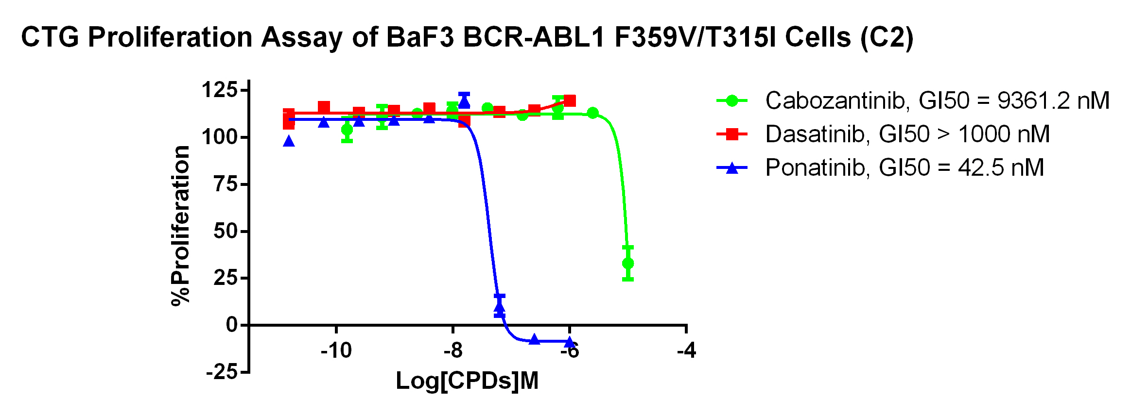 Figure 5. CTG Proliferation Assay of BaF3 BCR-ABL1 F359V/T315I Cells (C2). |