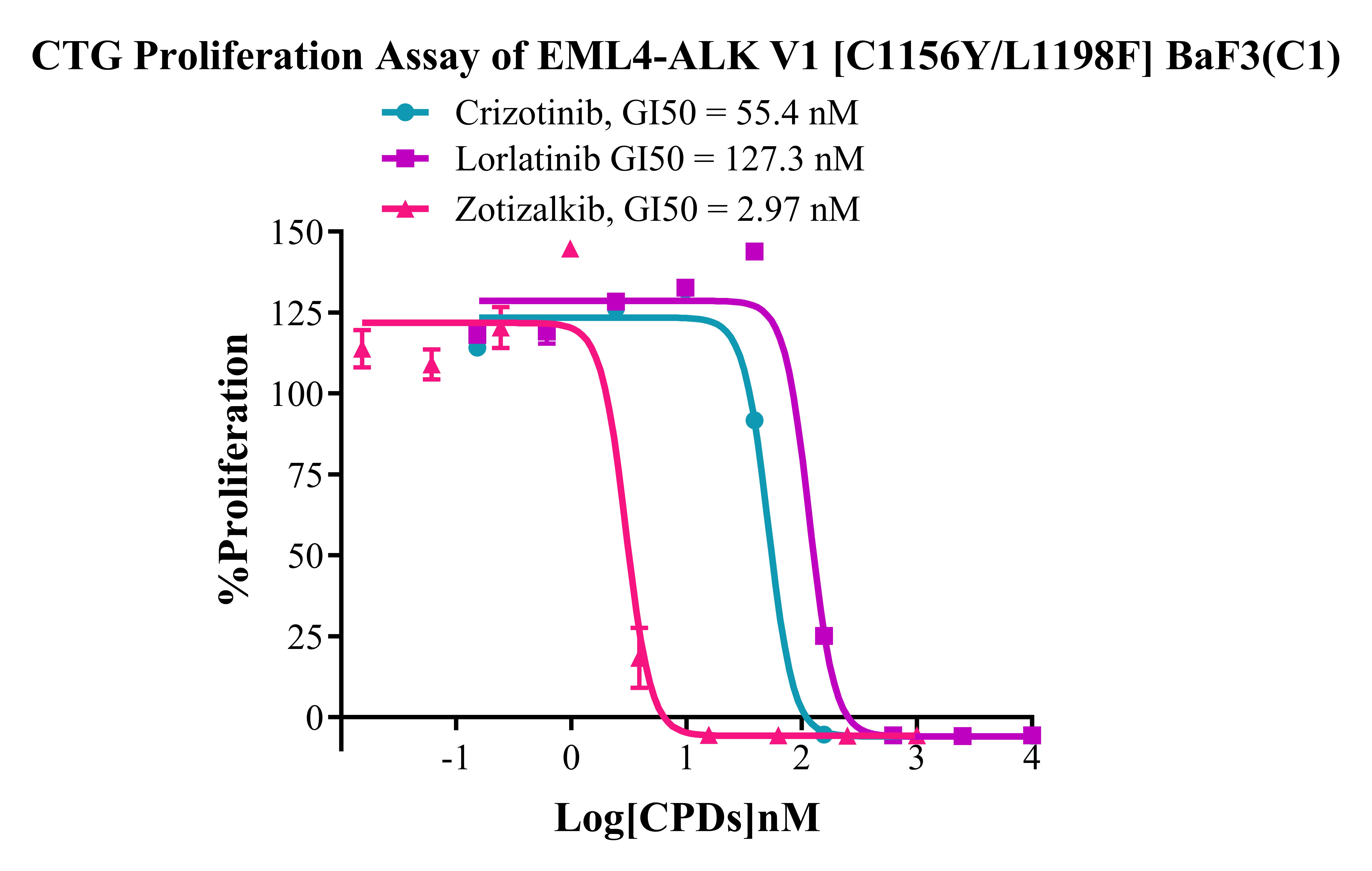 Figure 5. CTG Proliferation Assay of EML4-ALK V1 [C1156Y/L1198F] BaF3(C1). |