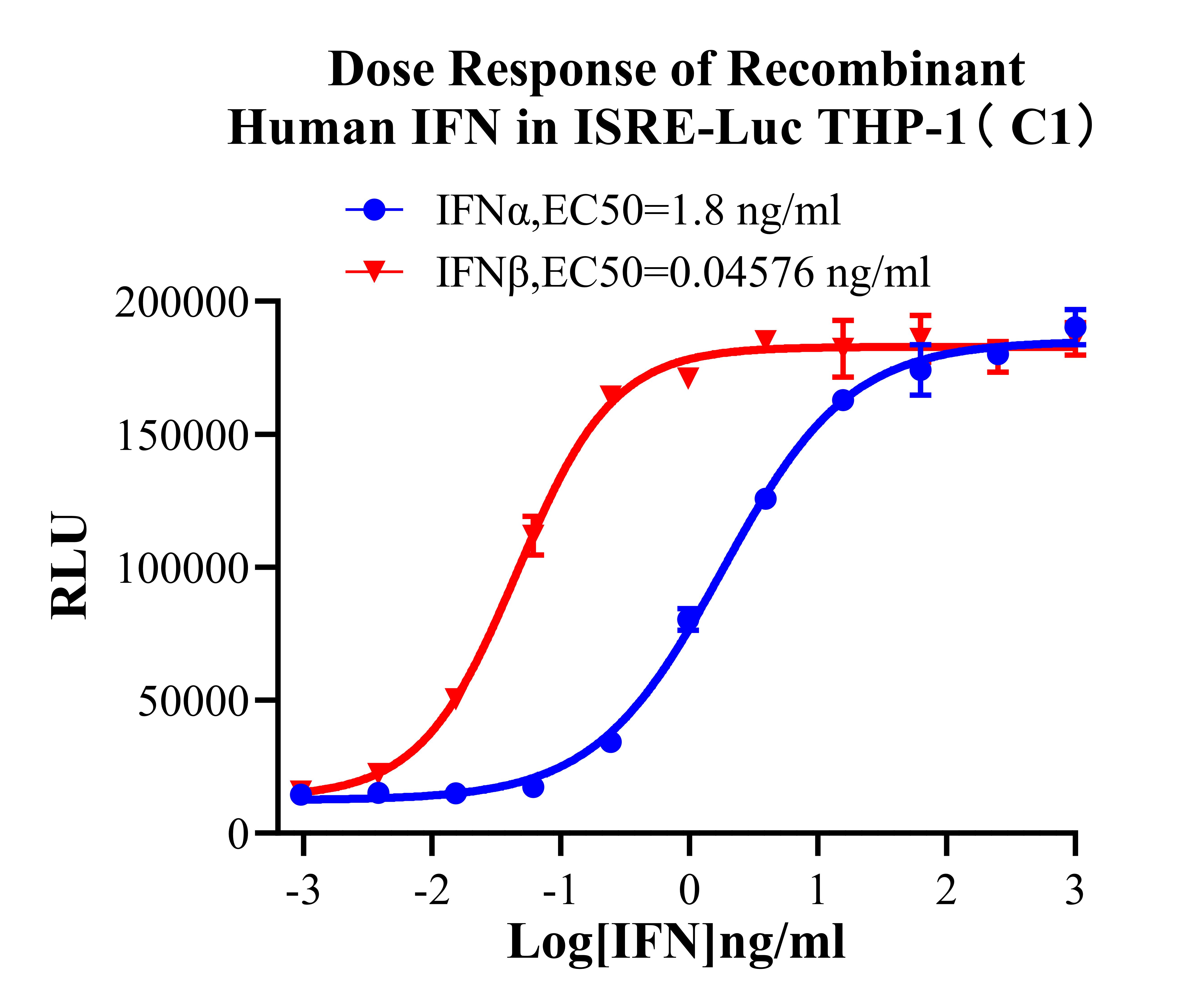 ![]() Figure 2. Dose Response of recombinant Human IFN in ISRE-Luc THP-1. |