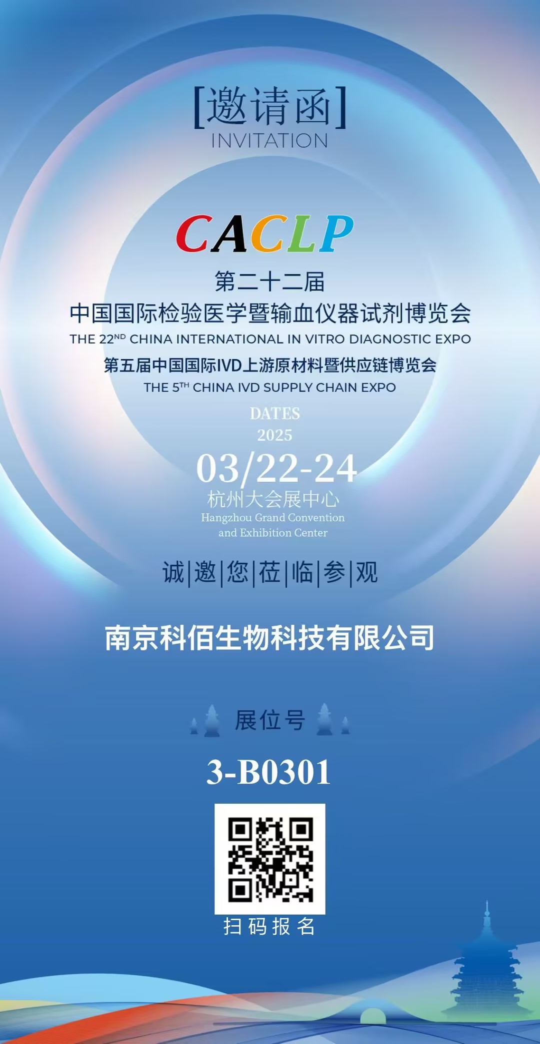 由智奧瑞和(上海)展覽有限公司主辦的第二十二屆中國國際檢驗醫(yī)學暨輸血儀器試劑博覽會(CACLP)、第五屆中國國際IVD上游原材料暨供應鏈博覽會(CISCE)將于2025年3月22日至24日在杭州大會展中心隆重舉行。