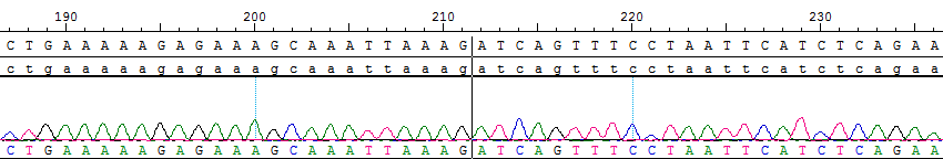 Fig 2. RNA的sanger測序發(fā)生14外顯子的缺失