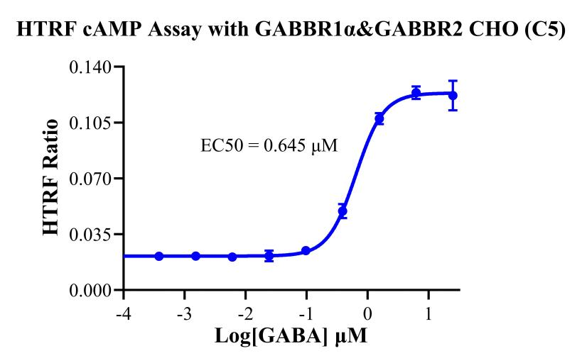 為助力GABABR靶點藥物研發(fā),南京科佰開發(fā)GABBR1α&GABBR2 CHO和GABBR1β&GABBR2 CHO細(xì)胞篩選模型。部分細(xì)胞產(chǎn)品驗證結(jié)果如下: