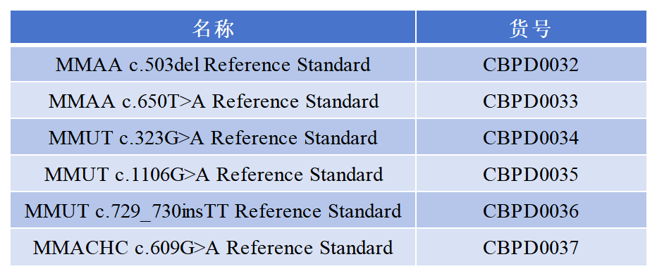 在MMA檢測實驗中,如何判斷結(jié)果的準(zhǔn)確性,標(biāo)準(zhǔn)品是必不可少的,科佰現(xiàn)推出MMA相關(guān)標(biāo)準(zhǔn)品,主要包含了MMAA、MMUT、MMACHC基因位點,后期還將陸續(xù)推出其他基因位點。