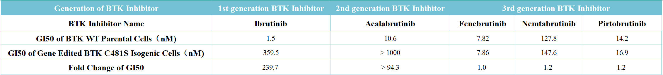 Figure 5:Gene Edited BTK[C481S] Isogenic Cell-CTG結果