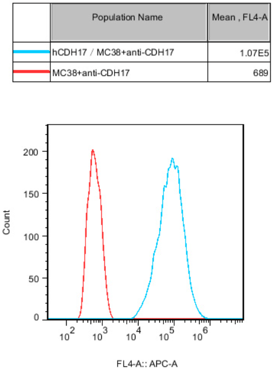 Figure 5. Recombinant hCDH17/MC38 stably expressing CDH17.